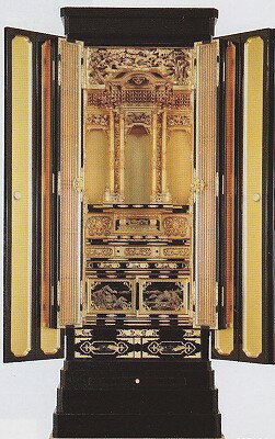 サイズ高さ172cm×巾74cm×奥61cm仕様角切瓜・小組付太子天井・高欄洲弥壇金具打・三段大柱スカシ金具打・障子面取・貝入り高蒔絵・中引出付・大引出付・中棚移動・大柱蓮華石付・面粉和讃台レビューを書いてプレゼント♪の『書く』にチェックを入れて購入すると お手入れセットをプレゼント!♪